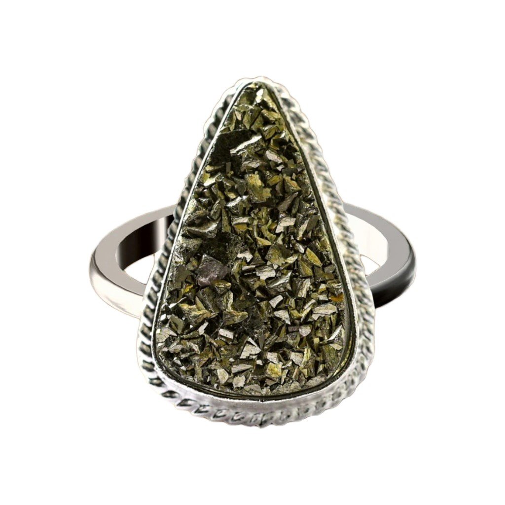 Adorn your hand with the Auragems Raw Pyrite Ring, featuring a unique, unpolished stone set in an adjustable silver band. This versatile piece combines organic elegance with the believed properties of pyrite to attract abundance and enhance vitality.